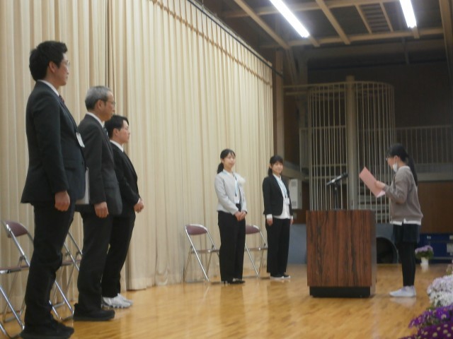 新しい先生方をお迎えし、6年生の代表児童による歓迎の言葉が堂々と述べられました。