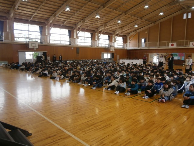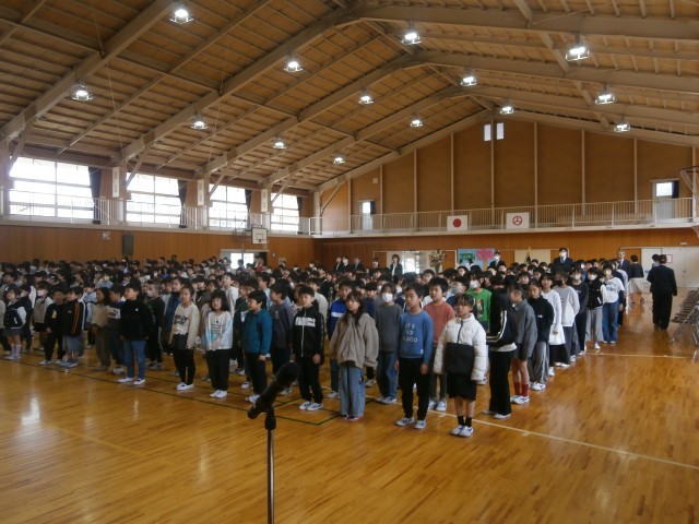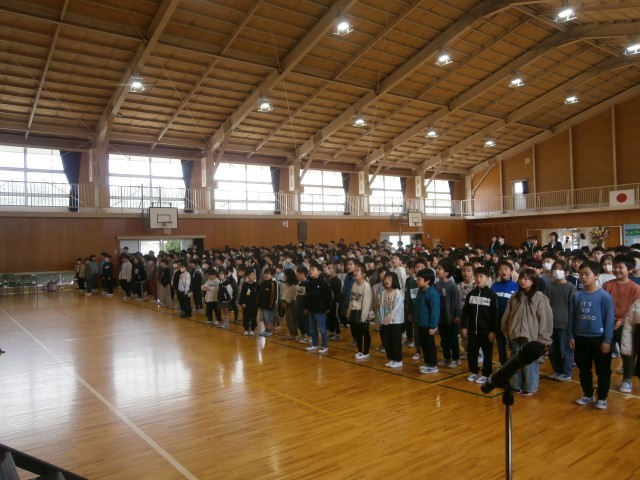 体育館で、着任式と第1学期始業式が行われました。