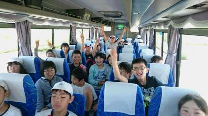 バスの中 隣の友達と会話も弾んで