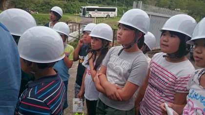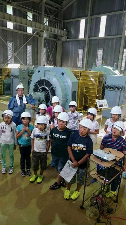 先ほど手で回して電気を作りました。その本物の仕組みを中に入って見学しました。
