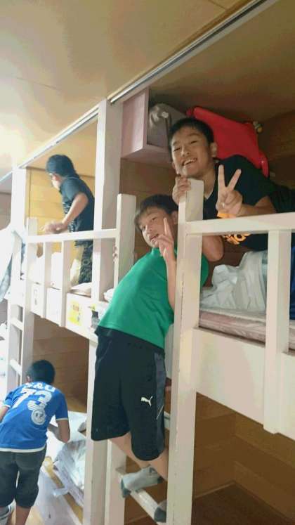 シーツ2枚を使って、自分たちの寝る場所を確保。