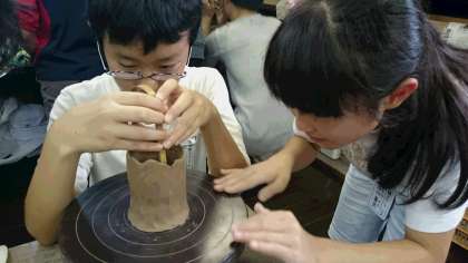 二人組になり、まわす係と飲み口を切る係に別れました。一番大切な仕上げです。みんな上手にできたかな。