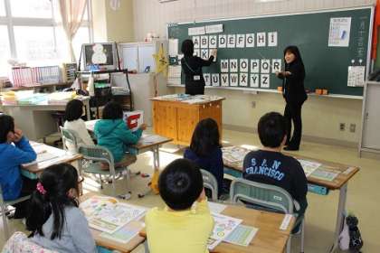 担任とのT.Tで、1年2組では、アルファベットの学習をしました。