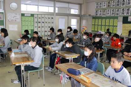 まつぼっくり朝の読み聞かせ 6年生各クラスで