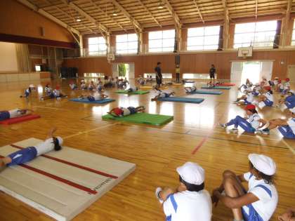 今日は、県中教育事務所より体育専門アドバイザー2名がおいでになりました。郷土を学ぶ体験学習に出かけた4学年を除く全学年の体育を指導をしていただきました。マット運動や走り高跳びの授業で、動きの模範や補助をしていただきました。業間や昼休み時間には、鬼ごっこやドッジボールをして、子どもたちと一緒に遊んでいただきました。