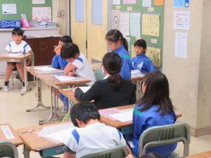 本日の5校時目に、初任者研修の一環として、3年2組で学級活動の授業研究を行いました。本の楽しさを伝えるために、本の発表会でどんなことを発表したり準備したりすればよいかについて話し合いました。