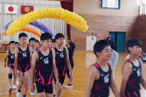 10月7日(火)の昼に、体育館で「陸上競技交歓会激励会」が行われました。