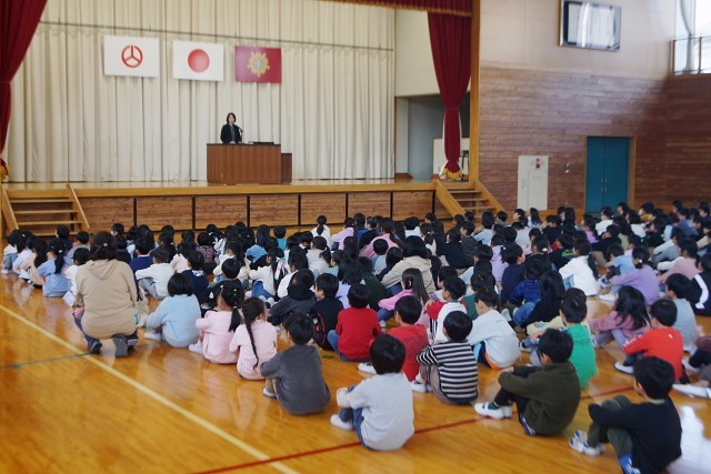 10月30日(木)の昼に、体育館で「全校集会」を行いました。
