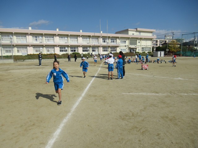 快晴の中、持久走記録会が行われました。一人一人が目標に向かって、全力で走り、応援することができました。子ども達からは、「最後まであきらめずに走ることができた。」「友達が、名前を呼んで応援してくれたことが嬉しくて、がんばることができた。」といった声が聞かれました。持久走の学習を通して学んだ「苦しいことを乗り越える力」「友達のがんばりを認め、応援する優しい心」を、今後の生活に生かしていければと思います。