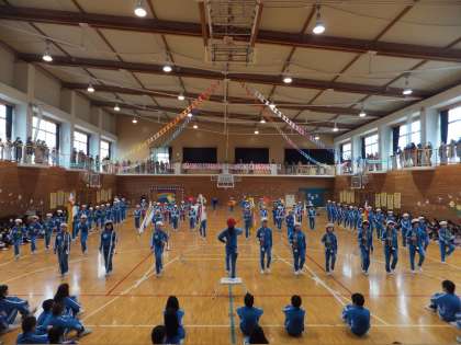 5年生は,全体の運営と6年間の思い出のスライドショーを披露し,鼓笛移杖式では,6年生から受け継いだ伝統の鼓笛の楽器を受け取り,「桜小学校校歌」を演奏しました。練習の成果が見られたとても素晴らしい演奏でした。