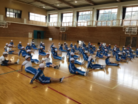 今日は、体を慣らすために軽めの練習メニューで汗を流しました。やはり、みんなと一緒に運動するのは楽しいようで、子どもたちは笑顔いっぱいでした。