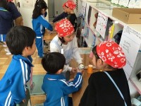 国語科の学習「ものの名まえ」では、身近な物の名前について、一つ一つの名前とひとまとめにした名前との関係性を学びました。また、開きたいお店の品物のカードを友達と作り、「お店の人」と「お客さん」に分かれて、言葉のやり取りを楽しみました。話し方や聞き方を意識しながら、「おみせやさんごっこ」をすることができました。