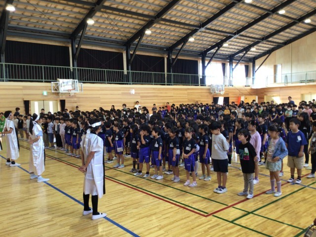 今日は、6年生の陸上交歓会に向けた壮行会がおこなわれました。5年生が中心となり進行を務めたため、全校生を引っ張る高学年としての意識が高まる機会になりました。応援のかけ声や手拍子、司会などたくさんの練習を重ねて臨んだ壮行会は、大成功でした。ありがとう5年生!!