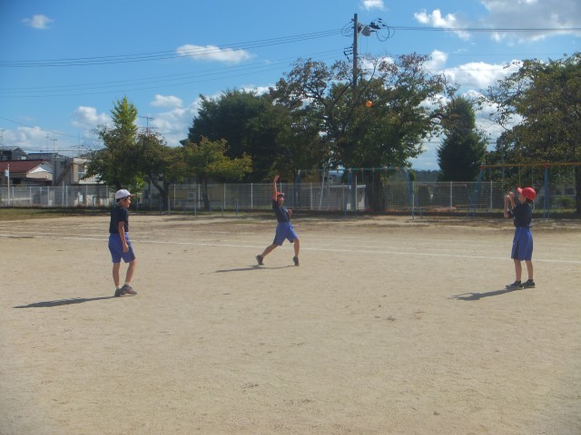 10月10日の体育では、ハンドベースボール型ゲームでキャッチボールをしました。子ども達もどのように投げたら遠くに飛ぶのか、相手がとりやすいのはどんな球なのかを考えてキャッチボールをしています。持久走の練習も始まっています。記録会にむけて一生懸命練習頑張っています!!