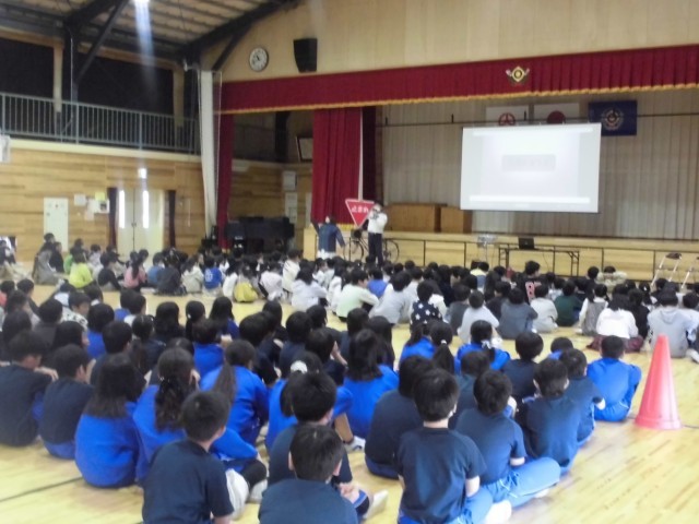 23日(木)全校生が体育館に集まり、交通安全教室を実施しました。自転車を乗るときには「ヘルメットを被る」「二人乗りはしない」などの注意事項や、自動車の内輪差の危険、一時停止のルールなど、様々重要な内容を学習しました。事故が起こる直前まで、自分に事故が起こるなどとは考えないものです。危険を回避する知識や普段の安全習慣を、しっかり身に付けておくことが何より大切です。