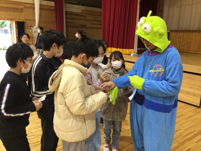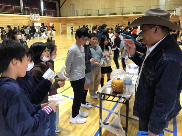 これまで学習してきた英語を思い出し、グループでミッションクリアを目指しました。仮装をしているたくさんのAETたちと会話をしながら、ハロウィンを楽しむことができました。