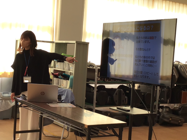 子ども達には無理のない範囲で話を聞くよう指示があり、病気になる原因や予防法などについて分かりやすく教えていただきました。