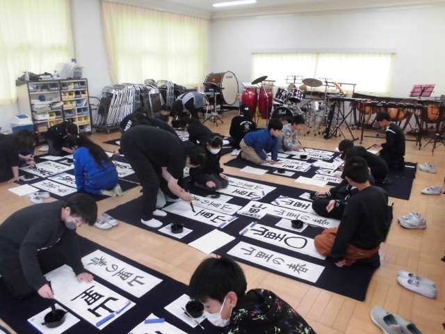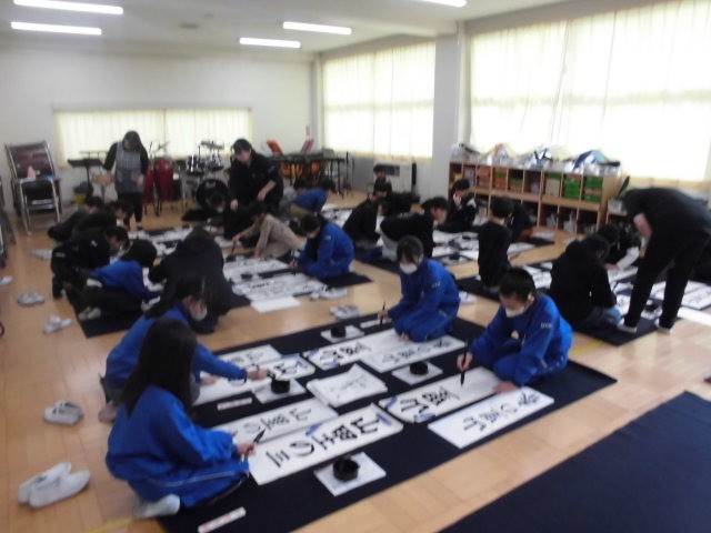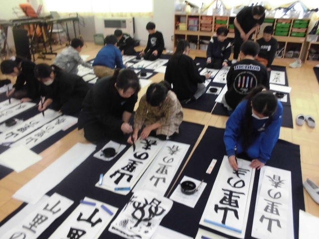 2日(火)5年生3クラスを対象に書道教室が行われました。今回お招きした講師の先生方には、様々な学校で和楽器演奏の体験学習などでもお世話になってきました。子供たちの学習に役立ててほしいと、3年生全児童の名前の手本まで作ってきてくださいました。有難いことです。