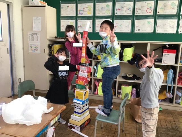 算数の「かたちづくり」図工科の「はこでつくったよ」の際には、空き箱などのご準備もありがとうございました。