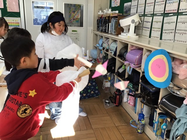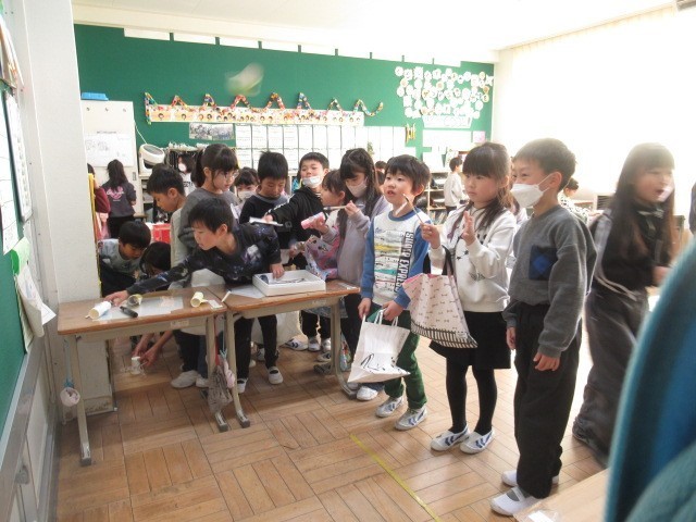 せっかく作ったおもちゃを1年生にも楽しんでもらいたいという思いから、今日「おもちゃランド」を開きました。それぞれのおもちゃの遊び方やルールを上手に説明したり、1年生にやさしく動かし方を教えてあげたりと頼もしく成長した2年生。1年生も笑顔いっぱいで、たくさん手作りおもちゃで楽しんでくれました。
