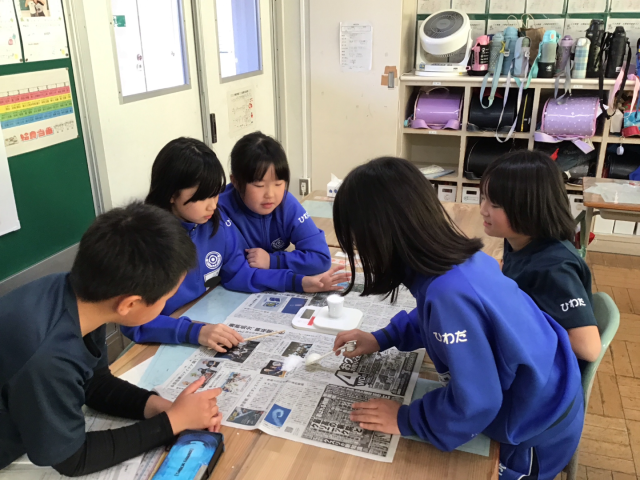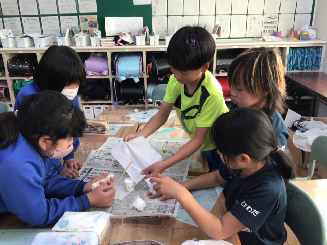 塩と砂糖を同じ体積にするために、カップに入れて、すり切りをして、電子てんびんに乗せて…グループで協力して行いました。そして、塩が約80g、砂糖が約50gと、重さの違いを発見しました。12月は算数科も理科も「重さ」について理解が深まった月になりました。