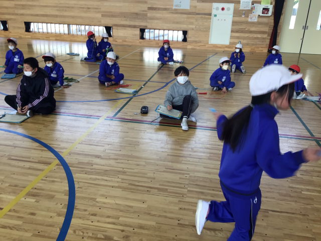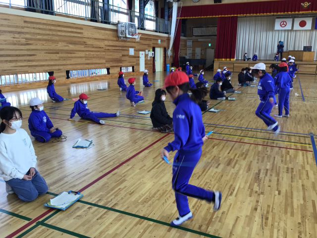 2年生の縄跳び記録会では、5年生が回数を数えるお手伝いをしました。2年生の跳び方をよく見ながら、丁寧に数える姿はとても頼もしく感じられました。つまずいてしまった時にも、「がんばって!」「いいよ!」と優しく声をかけ、2年生が安心して記録会に取り組むことができるようサポートしていました。高学年として、下級生を思いやり、行動する5年生の姿に成長とやさしさが感じられるよい機会となりました。ありがとう5年生!