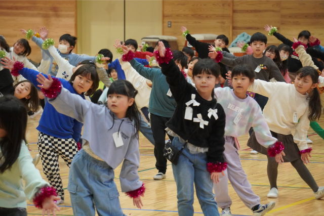 一生懸命練習をして、すぐに振り付けも覚え、心を込めて発表をしました。かわいいダンスと、渋い入退場曲のギャップで、みんなの心を鷲掴みにした一年生でした。