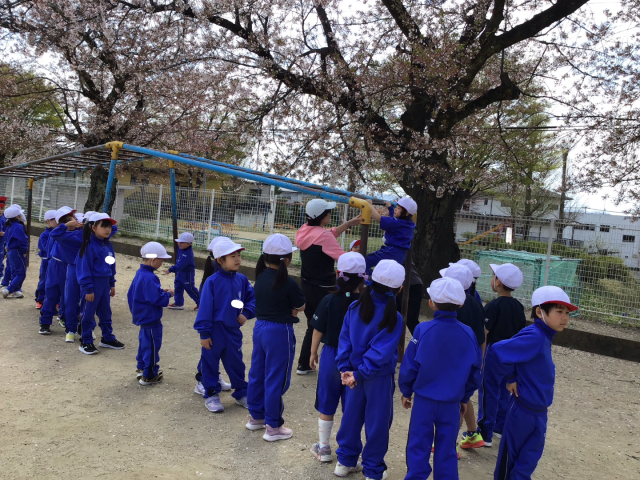 今日は2校時目の「体育」の学習で外へ出て、遊具の使い方や、ルールなどを確認しました。