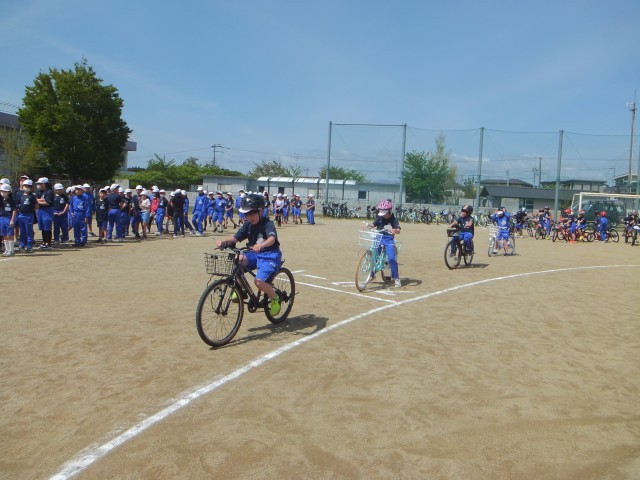 青空の下、交通安全教室を行いました。上校庭に模擬道路をつくって、自転車での交差点の通行のしかたなどを学びました。4年生となり、自転車に乗って友達と遊びに行くことが増えることが予想されます。放課後も、安全に気を付けて過ごすことができるように学校でも指導してまいります。ご家庭でも、お子さんと自転車の乗り方などについてお話をしていただければと思います。改めて、自転車のご協力ありがとうございました。