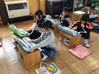 生活委員会さんが、ひなたタイムの時間に、本「あいさつ団長」の読み聞かせをしに来てくれました。