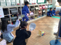 体育科の学習でマット運動を行いました。まずは横にコロコロ転がったり、前にゴロンと回ったりして体を慣らします。今回練習したのは「前回り・後ろ回り」です。さらに挑戦できる人は「開脚前回り」にもチャレンジしました。みんなどんどん練習をして、クルリときれいに回れるようになってきました。