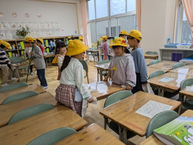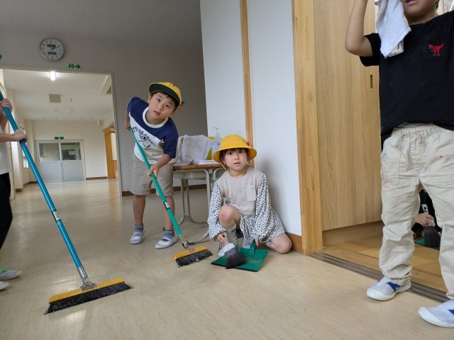 あいにくの雨模様ですが、せっせとおそうじをする子どもたちの姿が見られました。