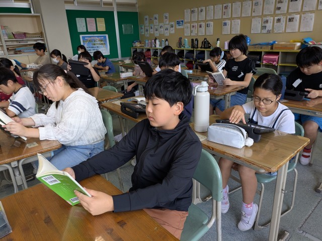 朝の読書の様子です。静かに本に向かう様子が見られました。