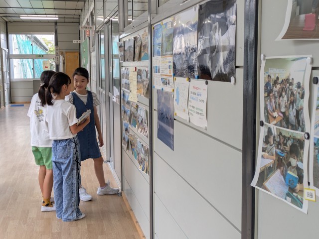 校長室がプレハブに移動したこともあり、校長室前に写真をはるようにしました。
