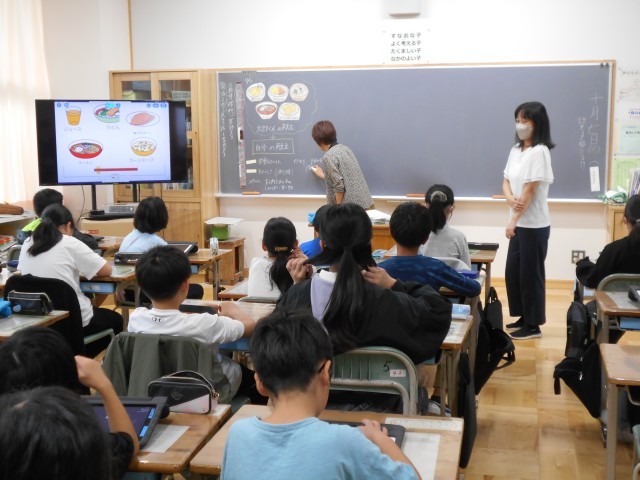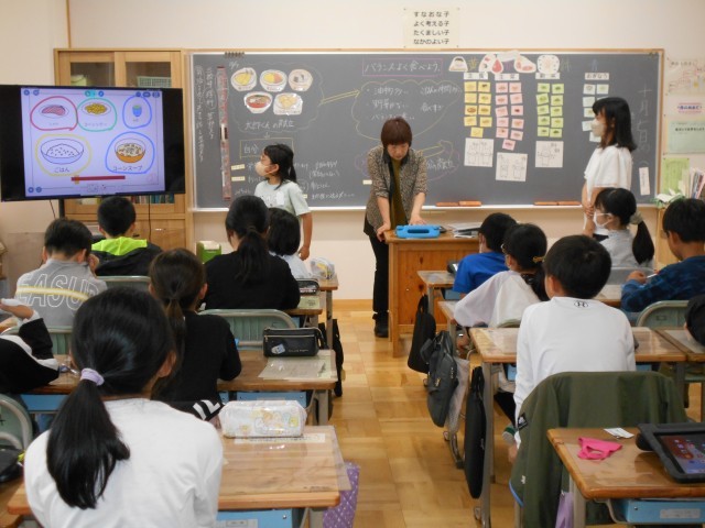 2校時、4年3組で食に関する授業を行いました。