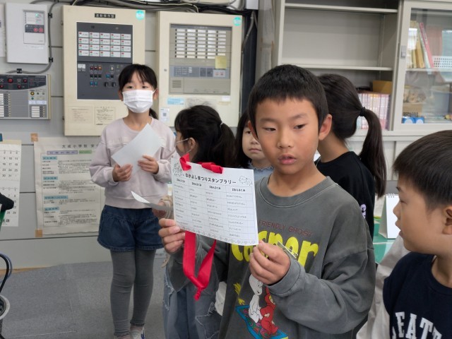 ※写真は、2年生が21日(火)の「なかよしまつり」の招待(先生方)をしているところです。