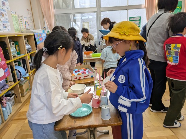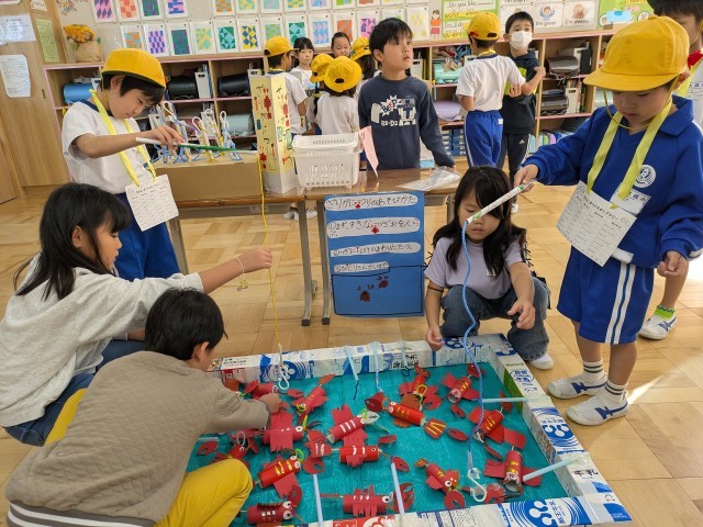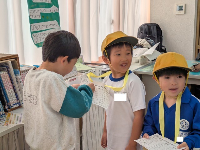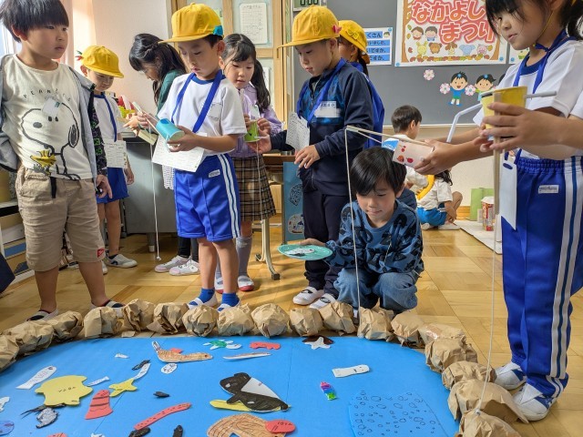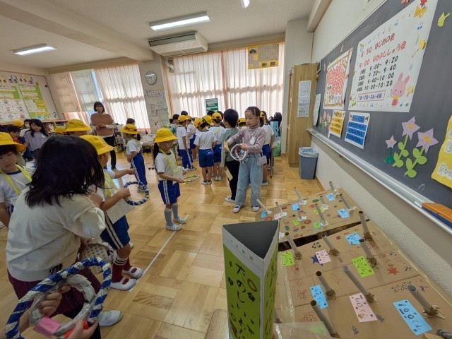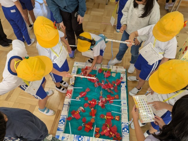 2年生が1年生の面倒をみながらゲームを進めていました。
