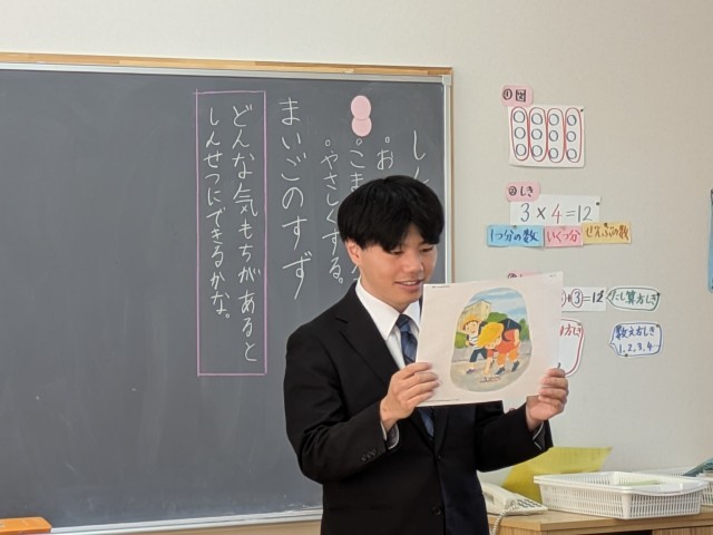 今日は、教育実習生の授業研究を行いました。子どもたちとの関係性もよく雰囲気のよい授業となりました。