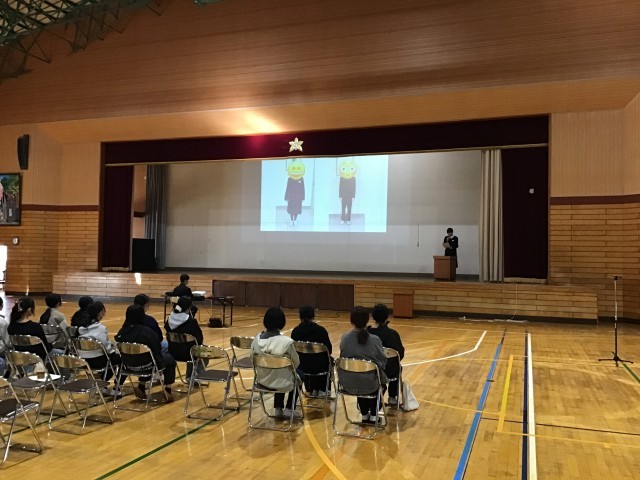 授業を参観させていただいた後、校長先生から中学校進学への心構えを、また生徒会のみなさんからは中学校での学習や生活についてお話をいただきました。