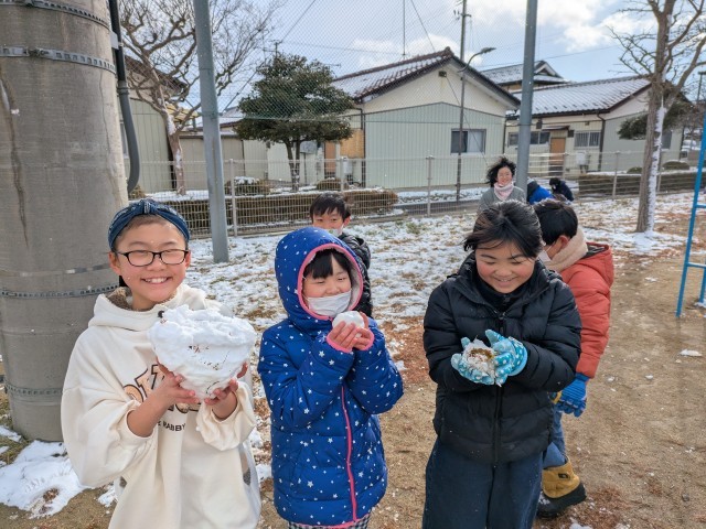 休み時間には、子どもたちが校庭で雪遊びをする姿が多く見られました。