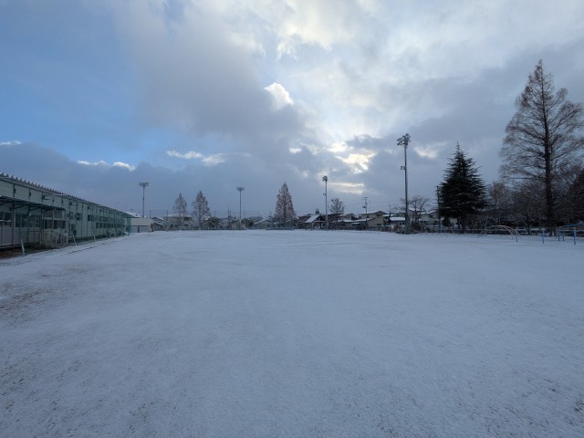 昨日からの雪で校庭は真っ白になりました。