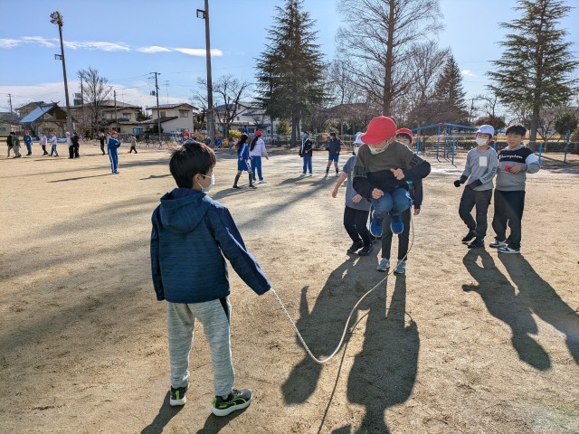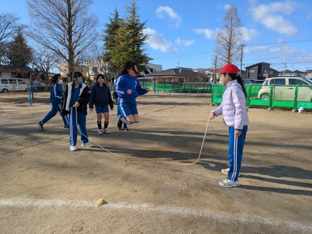 最近、長なわ跳びをみんなで楽しむ姿が見られます。
