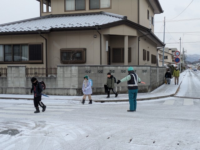 寒くても元気に登校する姿が見られました。「雪ニモ負ケズ」です。