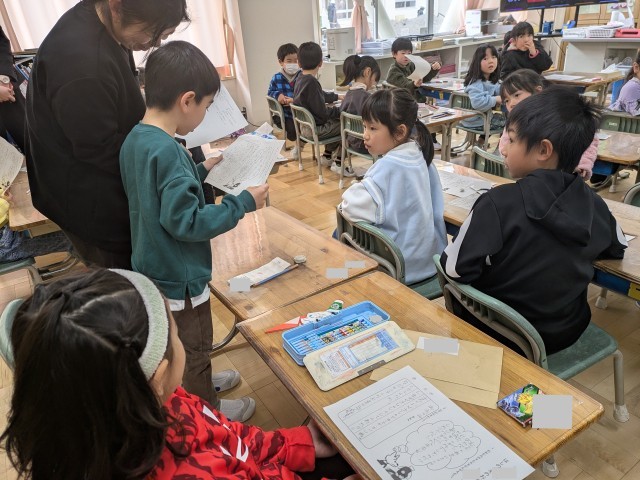 最後にお手紙を書いて登場人物の気持ちの変化に迫り、やさしくすることのすばらしさ、気持ちよさを共有していました。