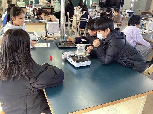 4年生の理科は、「水のすがたと温度」という単元を学習しています。この単元は実験がたくさんあるので、4年生はとても楽しく学習しています。今日は、2組さんが実験を行いました。ガスコンロを利用した実験でしたが、安全に気をつけ学習することができました。