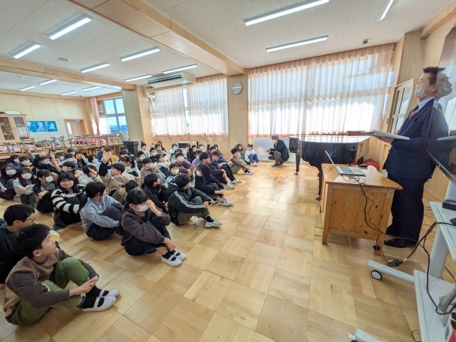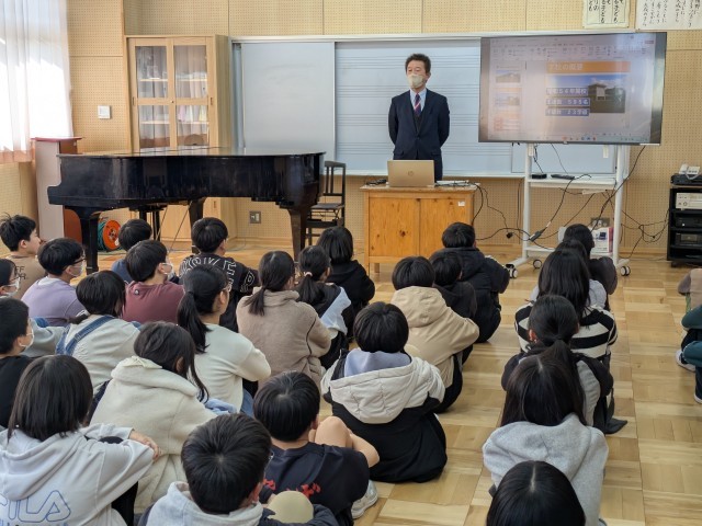今日の午後、一中と七中の校長先生がおいでになり6年生に中学校生活についてお話してくださいました。