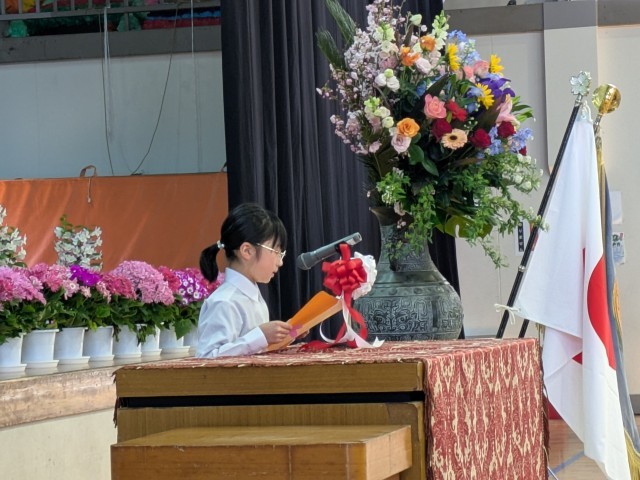 代表児童からの歓迎のあいさつもあり、運動会やプール、遠足など楽しい行事についての紹介がありました。