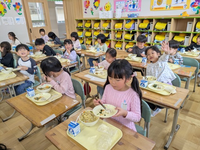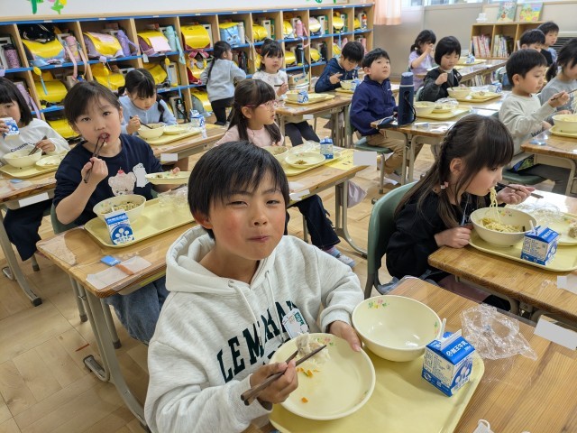 1年生は徐々に小学校の給食のリズムになれてきているようでした。