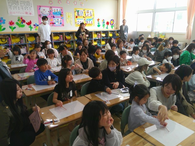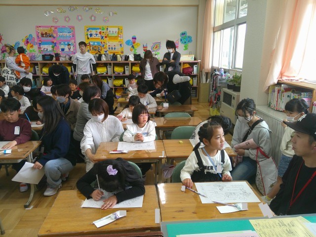 おうちの人と鉛筆の持ち方などを一緒に学びました。