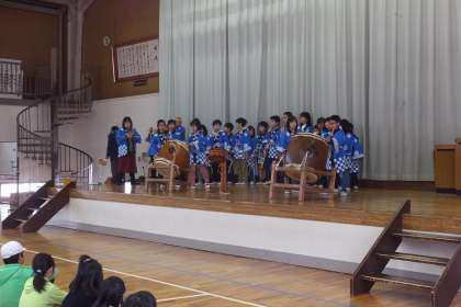 安積甚句保存会大成地区伝統文化子ども教室による太鼓発表